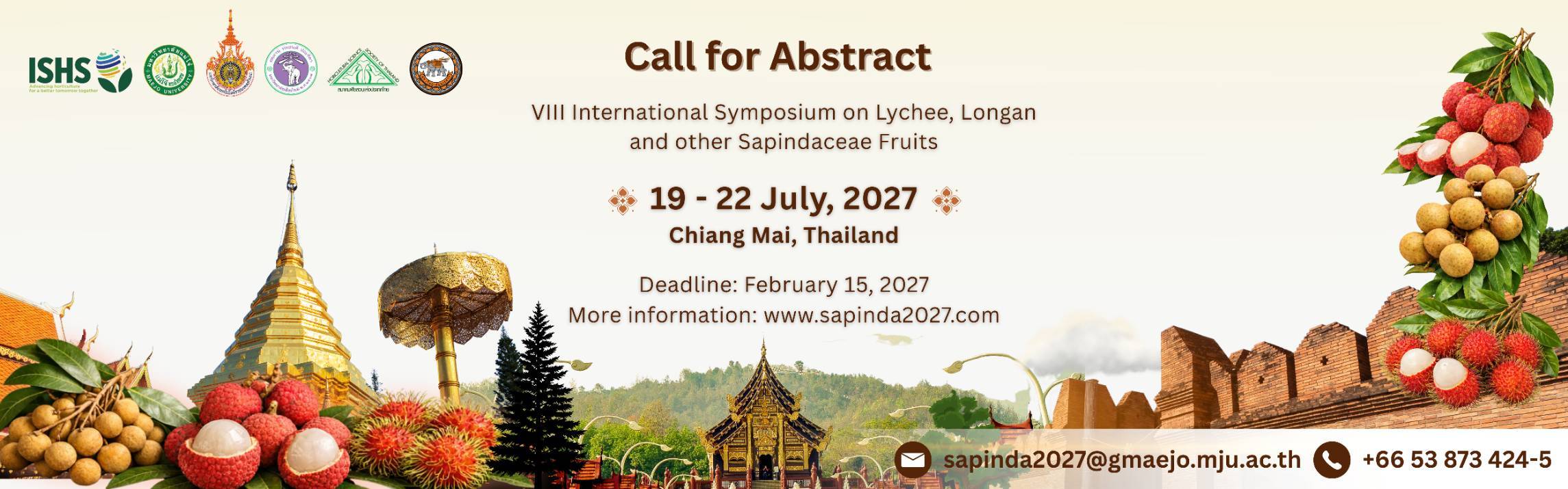 VIII International Symposium on Lychee, Longan and Other Sapindaceae Fruits will be held in Chiang Mai, Thailand, 19–22 July 2027, hosted by Maejo University. The event aims to strengthen international collaboration, highlight emerging research and technologies, and connect scientific progress with practical impact across production systems and markets.